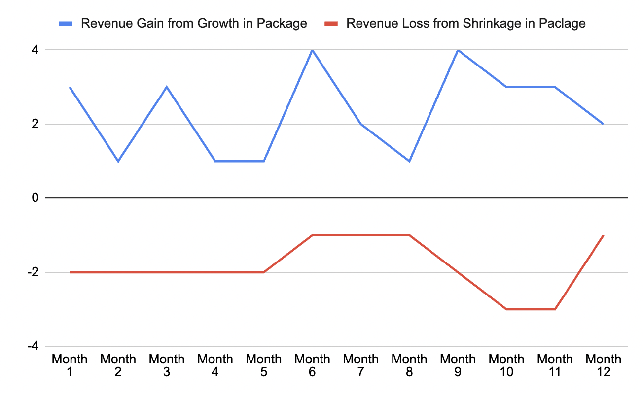 In establishing the baseline one generally wants to look at Revenue Gain from Growth in Package and Revenue Loss from Shrinkage in package together.