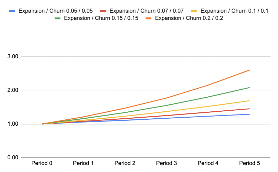 This is another way to measure Net Dollar Retention, one that makes the dynamics more obvious.