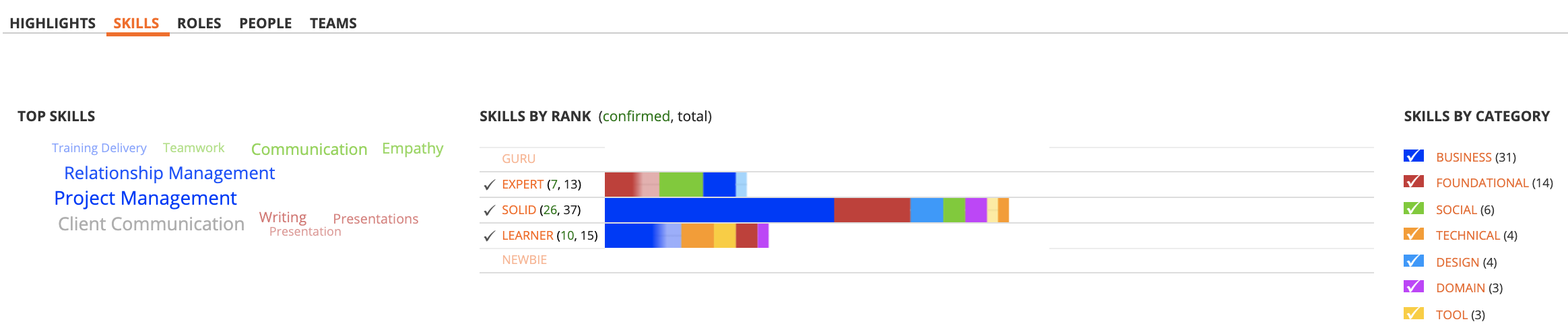 Below you can see one way we use the skill categories in skill profiles.