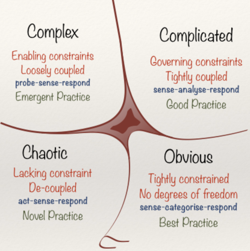 Play can have some pretty serious purposes, as is indicated above by the inclusion of Problem Solving as an application domain. Can one solve problems without play? Sometimes. Using the Cynefin classification of problems (see above), play may help us learn how to solve obvious and complicated problems, but one needs to be able to play to solve the complex and chaotic.