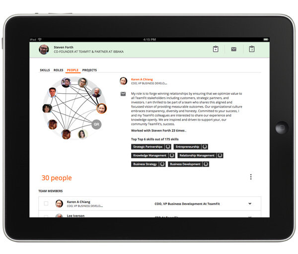 There is an incredible boost of energy if you are able to find the right fit with people organized around common goal. We designed TeamFit to harness this energy and allow people to function better in a very fast moving workplace. Start using TeamFit and find out your unique skill-based "footprint". You can do this not just for yourself, but for your team and the circle of people you work with. The engagement you get will drive performance.