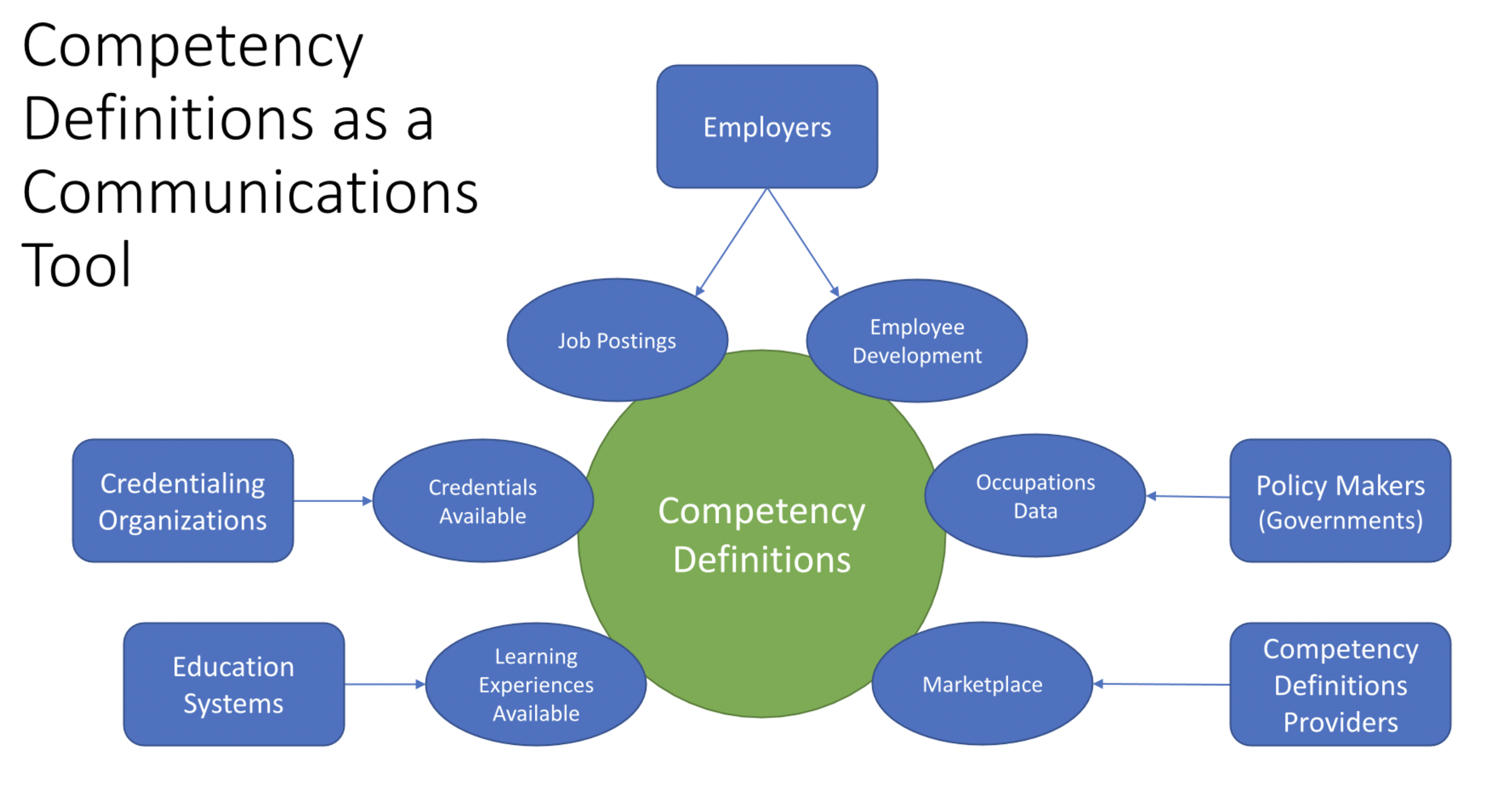 Competency models can also play an important role in coordinating communication between different parts of the talent ecosystem. Given the work that needs to be done in reskilling and upskilling the global workforce we need a better way to align efforts. Competency definitions can be an important communication tool connecting people looking for work and managing their careers, employers, government policy makers and education systems.