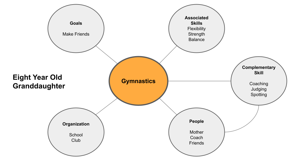 One place to start when connecting skills is with other skills. The Ibabka platform does this for you in the background, but it is useful to sketch this out for yourself. Pick one skill you are interested in and ask the following three questions.