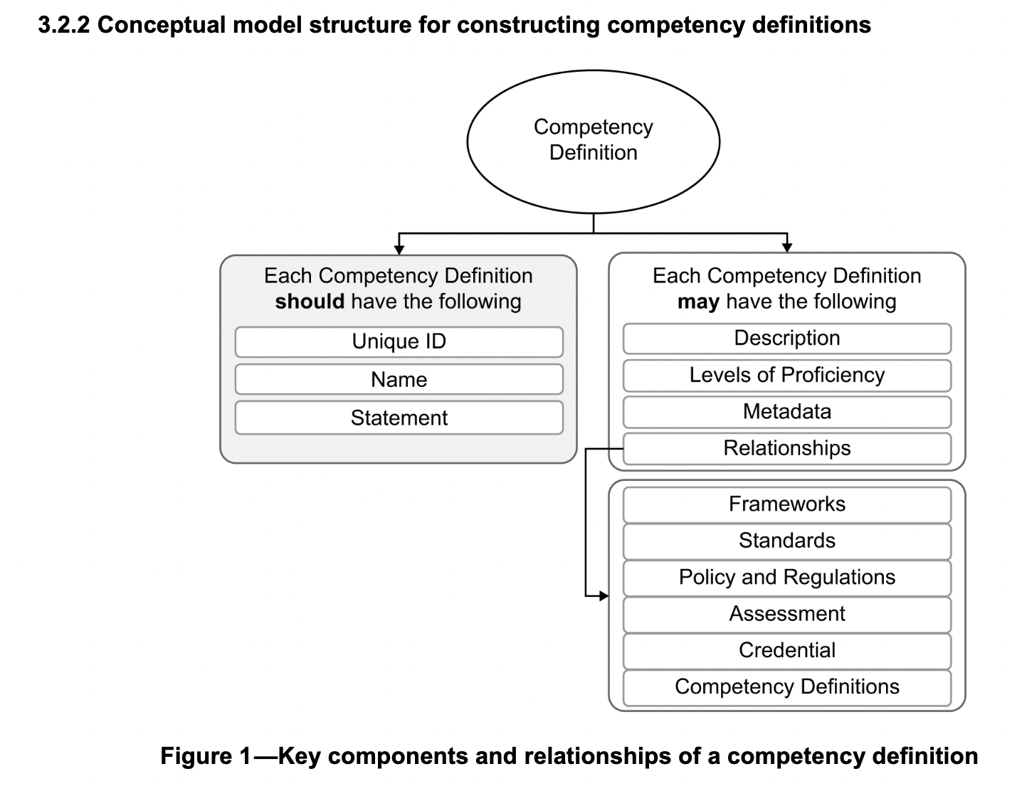 Transformable: Regardless of the data format used to store competency definitions and frameworks, machine-readable competency definitions can be cross-walked and transformed to other data models.