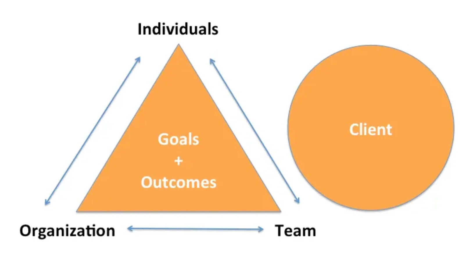 Clarifying deliverables happens in the context of goals. It is often more important to get alignment on project goals than it is to break down the project into granular details. Goal alignment is more complex than it looks. There are three internal tensions that have to be addressed. An individual’s goals need to be aligned with the team and the organization. The team’s goals have to be aligned with the individual and organization. And when the project is for a client, these goals have to align with those of the client.