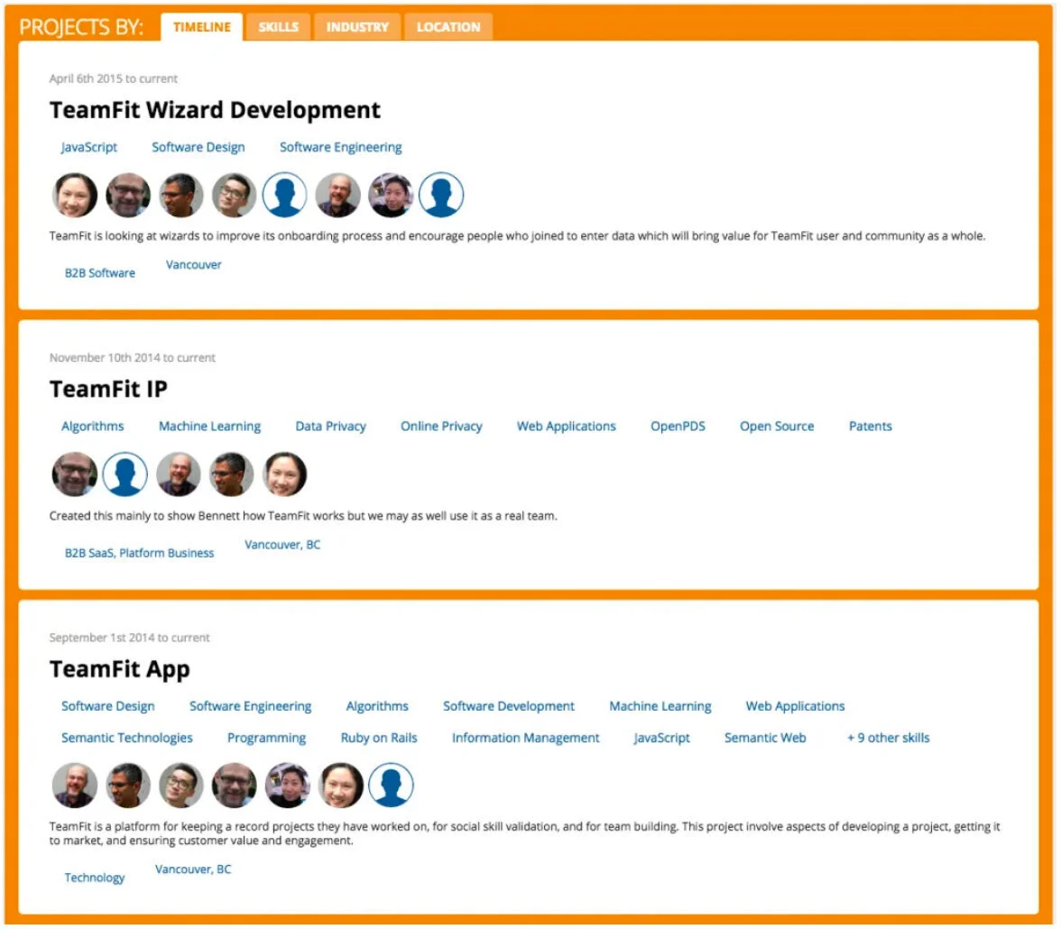 In the future, TeamFit will let you see what skills are needed for specific roles and where you fall short, and what improvements you can make to your skill profiles that will improve your TeamMatch™ score for specific projects. You will also be able to see how the skills a person has applied to projects has changed over time, and how their expertise has grown and decayed.