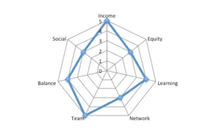Based on interviews with people participating in our round tables (so far we have sat down with senior consultants, junior consultants and project managers) we came up with seven aspects that people consider when making a choice: Income, Equity, Learning, Network (contribution to building their network), Team (team quality), Balance (work-life balance), Social Impact. We renamed ‘Wealth’ as ‘Equity’ to make this aspect easier to understand and added Work-Life Balance as an additional aspect at the suggestion of several human resources experts.