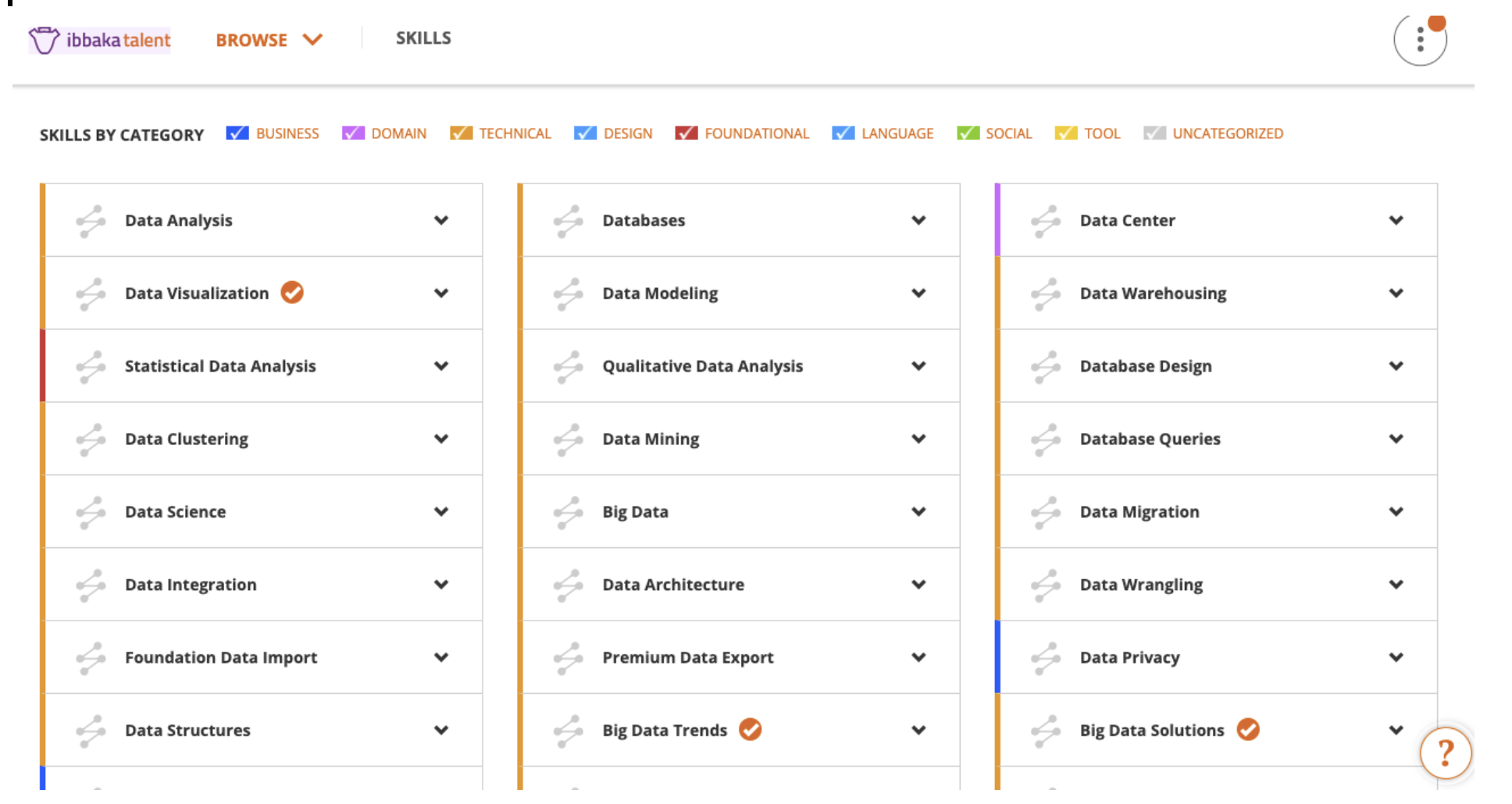 A quick search on data literacy skills within Ibbaka Talent provides a listing which has been growing over time.