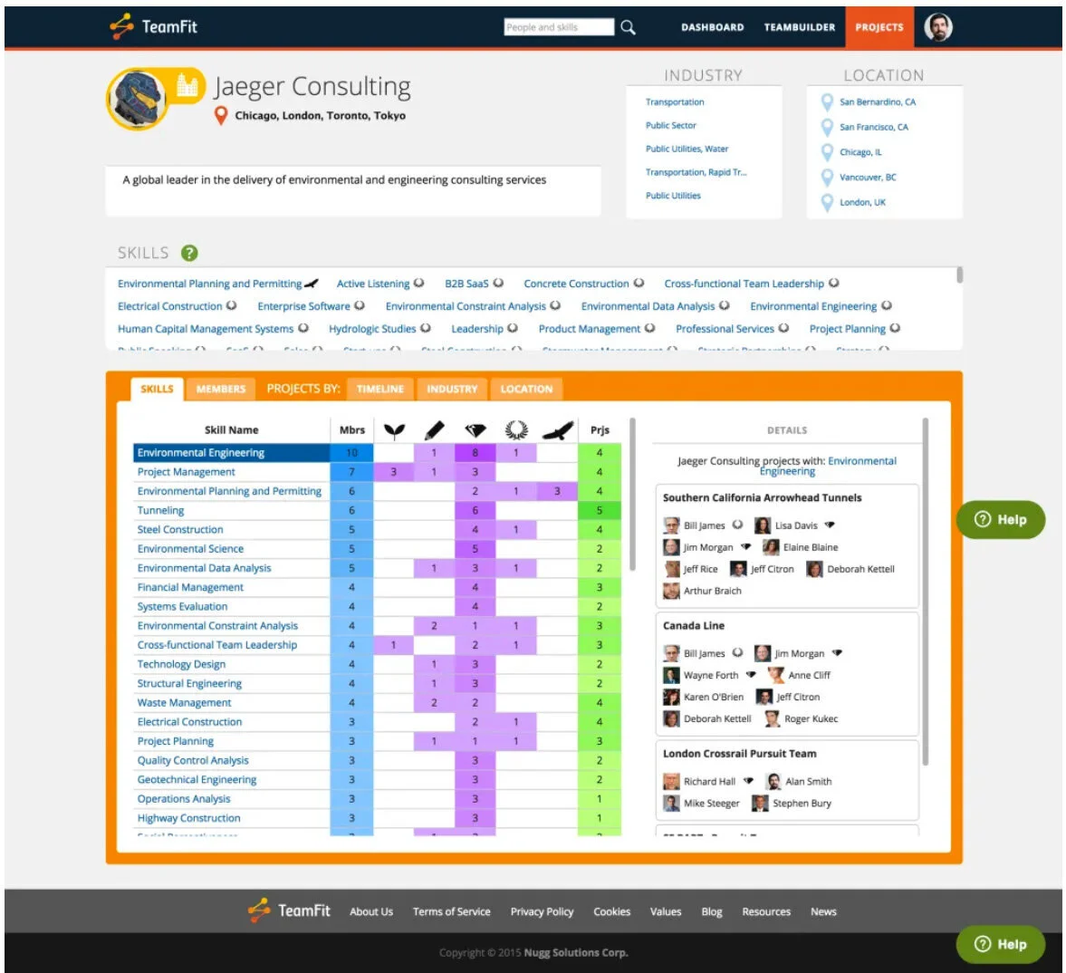 How you go about managing skill gaps will depend on why the gap has opened up and your business strategy. But in any case you will need to know your current skill map to see where the gaps are. Below is a Skill Map from TeamFit. You can quickly see what skills are in the company, at what levels, and what projects they are being applied to.