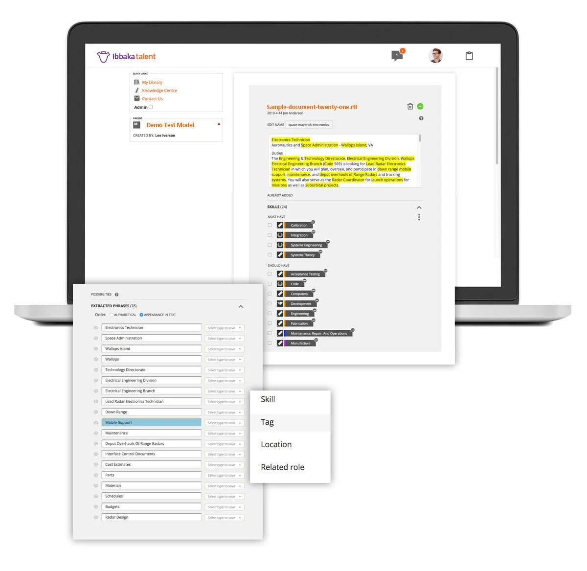 The remainder of the extracted keywords are listed in the Details’ EXTRACTED PHRASES section. One of these extracted phrases can be renamed (if you wish) and assigned as a Skill, Credential, Tag, or Location.