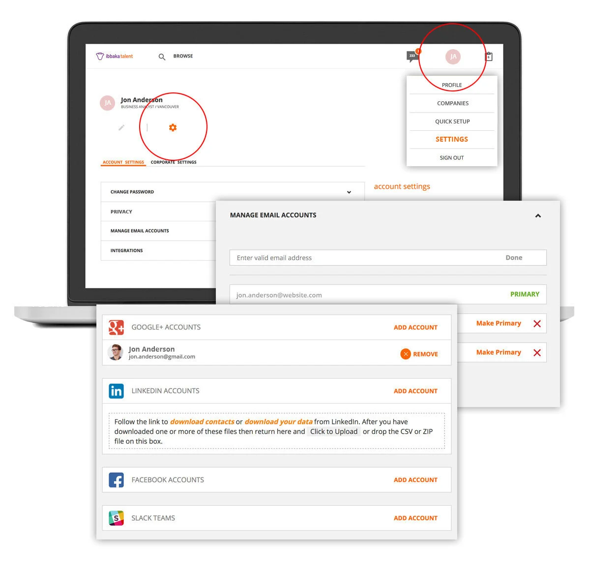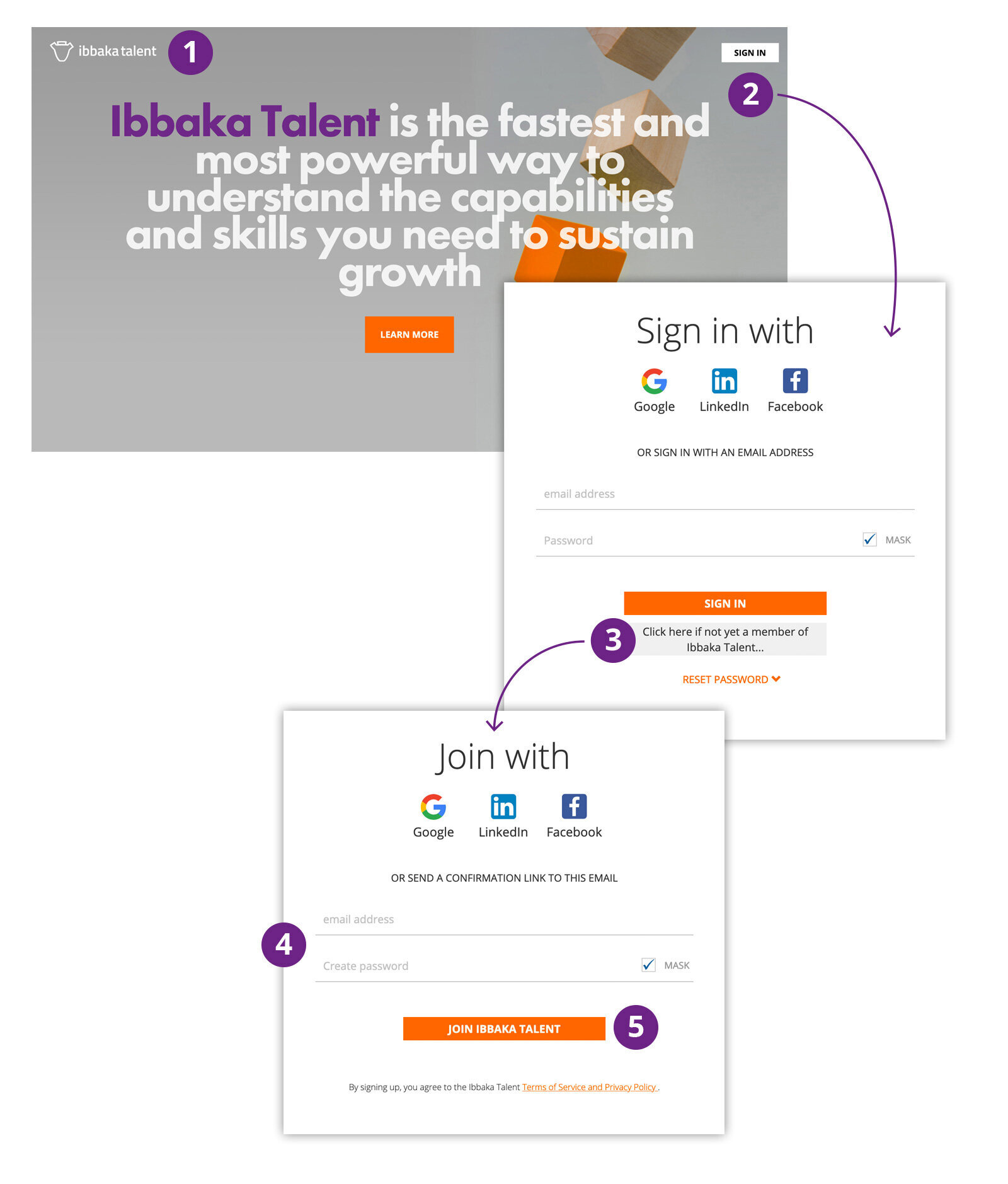 Note: If you can’t find that email, visit talent.ibbaka.com and click on the sign-in link located at the top-right corner of the screen. You can sign-in with Google+, LinkedIn, Facebook or sign-in with your email address.