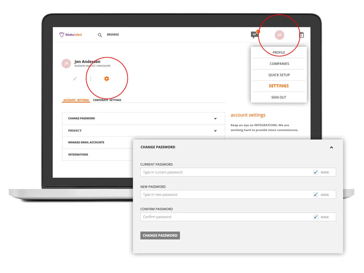 To open Account Settings, click the gear icon or select Settings from the main menu.