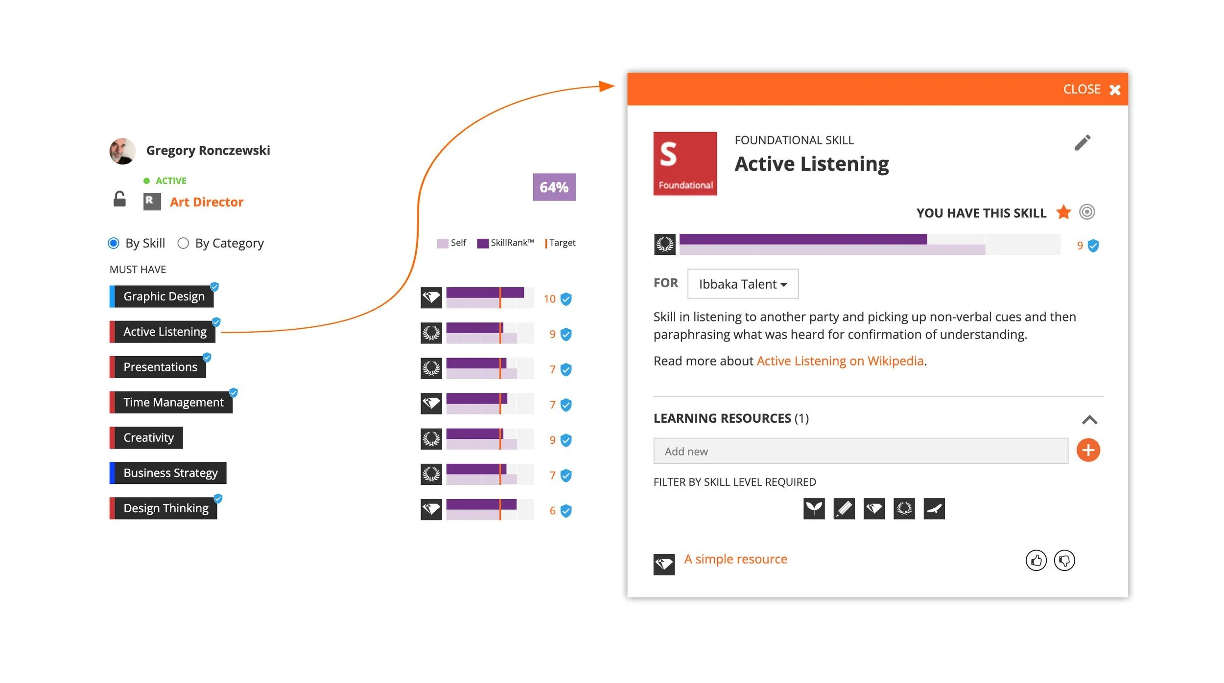 Support development planning: Quickly assess which skills are missing for individuals aspiring to a role, and/or which skills individuals should build to become better in their current role.