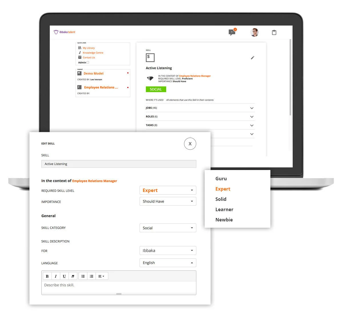 If the skill page is opened in a context like some job, if you are an editor you can enter edit mode (the pencil icon) and change the required skill level and importance for that context. You could also edit general attributes, like the category the skill is in, its description, and whether the description is for everyone, or just the company.